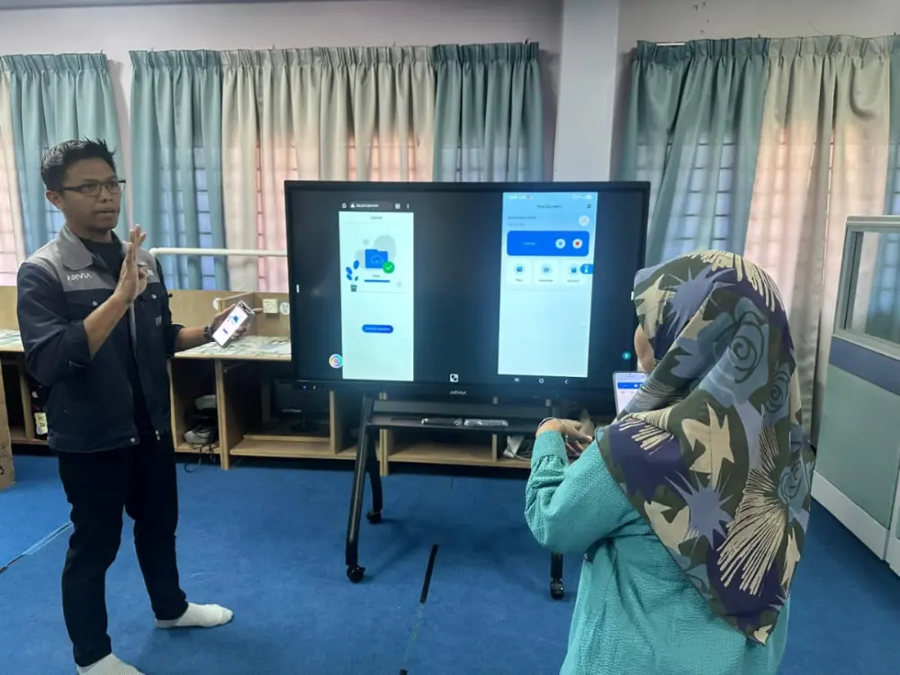 Israk Solutions supported Kulim Technology Park Corporation Sdn Bhd (KTPC)’s corporate social responsibility initiative by supplying and deploying the ARV600 AI Smartboard at SK Taman Hi-Tech — featuring intuitive touch recognition, voice command functionality, intelligent content suggestions, built-in educational software, digital whiteboard applications, and seamless connectivity — advancing digital classroom transformation for Kulim community students.
