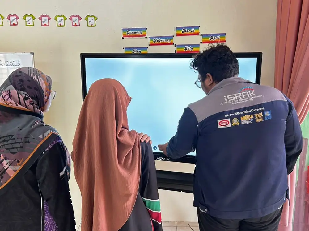 Israk Solutions supplied and installed additional ARV200-55 smartboard units at Kindergarten Mukmin Junior’s Puncak Jalil branches in Selangor as a repeat order, featuring responsive touch interface, bright 55-inch visuals, user-friendly interaction, and age-appropriate learning capabilities — supporting interactive storytelling, educational games, and multi-sensory learning for children aged 3 to 6.